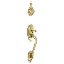F60-505 Bright Brass (Lifetime Finish) Bowman Handle Set with Flair handle Certifications: ANSI A156.5, 1992, Grade 1 Applications: Residential locks single and multi-family entrance doors Latches: 1" x 2-1/4" Radius corner faceplate, 7/8" housing, 1/2" throw Deadbolt: 1” x 2-1/4 Radius corner, 7/8” housing, 1” throw Strikes: 1-5/8" x 2-1/4", Full lip, Radius corner, no box Door Ranges: 1-5/8" to 1-3/4". Packed with extra screws for 2” doors Backset: Universal latch standard, fits 2-3/8" or 2-3/4" backsets. Reinforcement: Door frame reinforcer with 3” screws Cylinder: Standard Pin and tumbler or SecureKey Technology enables 10 times more key cut combinations than other locks, making homes 10 times more secure from key duplication. Bump and pick resistant (cylinder meets UL 437, section 11.6) ANSI / BHMA Grade 1 Cylinder and Deadbolt SecureKey Technology provides superior key control by using a unique blue Reset Key to re-key the lock The blue Reset Key has a specific key cut, ensuring that only your blue Reset Key will re-key your lock Keys: Two nickel cut per lock Handing Instructions 1) Stand on the outside of the door (side with handleset). 2) If hinges are on the left, door is a left hand door. 3) If hinges are on the right, door is a right hand door.
