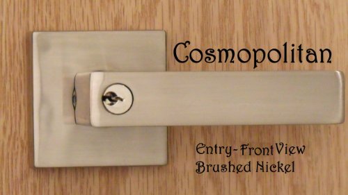 Front Door Lock Entry Door Handleset Lockset Hardware Cosmopolitan Handle For Exterior Entrance or Patio Doors in Brush Nickel Finish Review